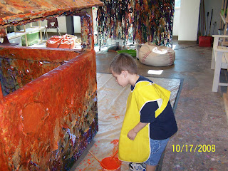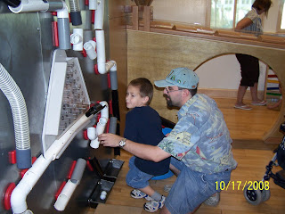 This week we are fortunate to have Doug's parents visiting from MA. Airen is so excited they are here. Mara has surprisingly taken very well to them. She is giving lots of hugs. On Friday we kept Airen from school and Doug had the day off. We all took a trip to the Children's Museum of Phoenix (http://www.childrensmuseumofphoenix.org/). Airen & Mara had a blast. I am very pleased with this place. Its full of sensory activities perfect for any child, especially Airen. There was an arts and crafts room, a play kitchen room, a grocery store. There was also a place with tricycles and a obstacle course and car wash for the kids to ride around. There was also a room that had all these courses set up that you would put the balls in the shoot and off they went. Again both kids had so much fun. Airen has already asked when we can go back there. The $9.00 admission isn't too bad so we will probably go back there again. Next time I think we want to ask some of our therapy friends to join us and make a day of it with the kids.